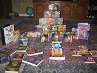 Christian A., Age 14 (Martin, Tennessee) ─ Christian's photo makes me want to slow down and take it all in... not to miss anything. I especially like the pyramid of AIO albums in the background, with the wheel of books in the foreground. Is that a script for "The Great Wishy Woz"? Very cool.