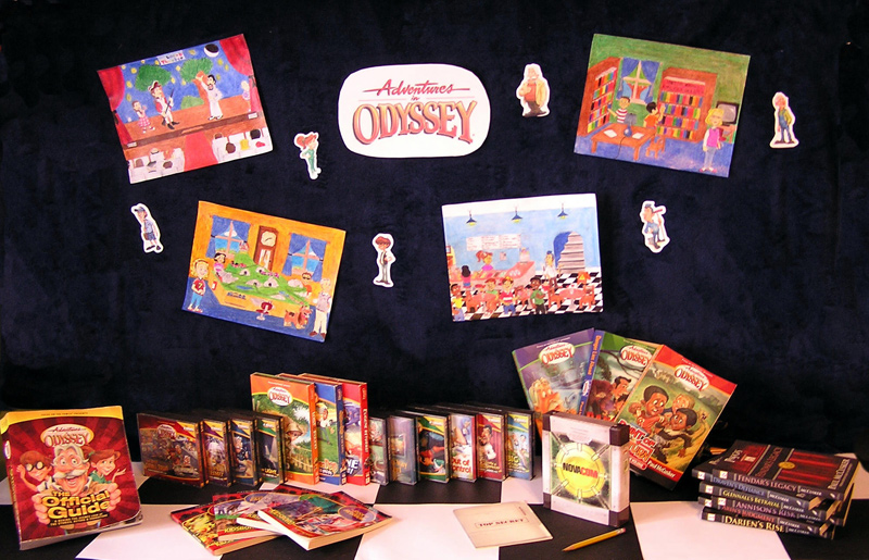 Bethany N., Age 12 (Westminster, Maryland) ─ Bethany has a lot to display with her Odyssey collection. She has integrated the old with the new and created some tasty viewing. You'll even notice that Bethany's 20th anniversary poster is prominently displayed, along with some "Gold Audio Series" inserts, the original "Complete Guide," puzzles, and even stickers from the 90's!